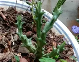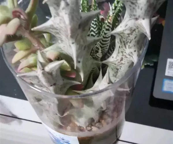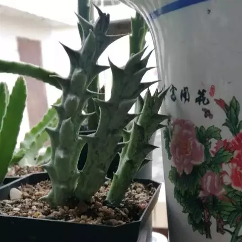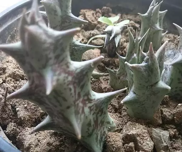 紫龙角植株小巧玲珑,肉质茎长满龙角状突起,开出星状花,非常奇特耐观。盆栽摆放案头、书桌或博古架,显得十分古朴典雅,像是一件有生命的“小摆件”。