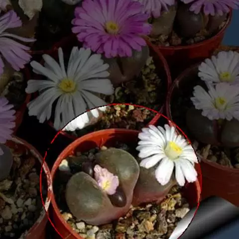 叶子表面宽厚,富肉质感且带有磨纱质感,看像石头质地;开红色小花,生于植株顶部,倒伞形密生,形状像花…