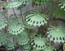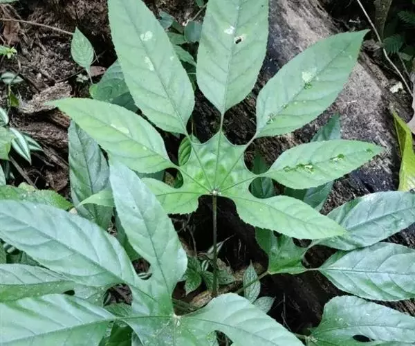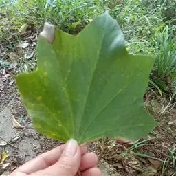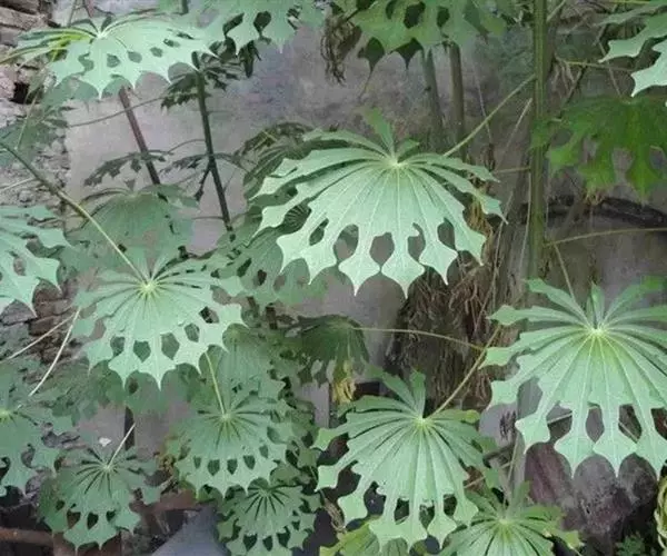 生药材鉴定:性状鉴别完整叶片直径可害90cm,掌状深裂裂片5-9,披针形,先端长国尖,边缘有大锯齿,两面或仅在下面散生黄色星状毛;叶柄长可达90cm,常疏生短刺。叶片革质。