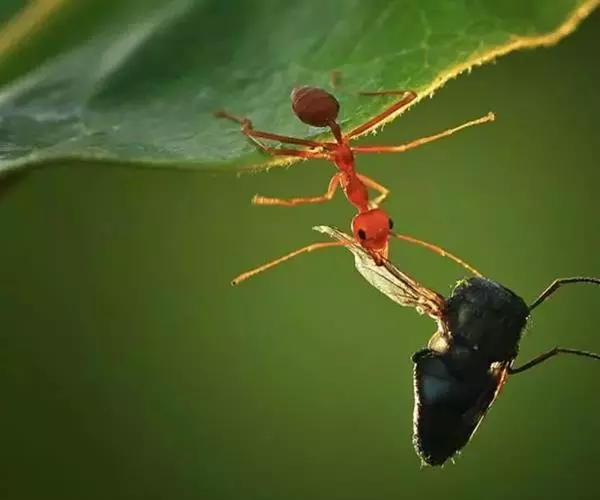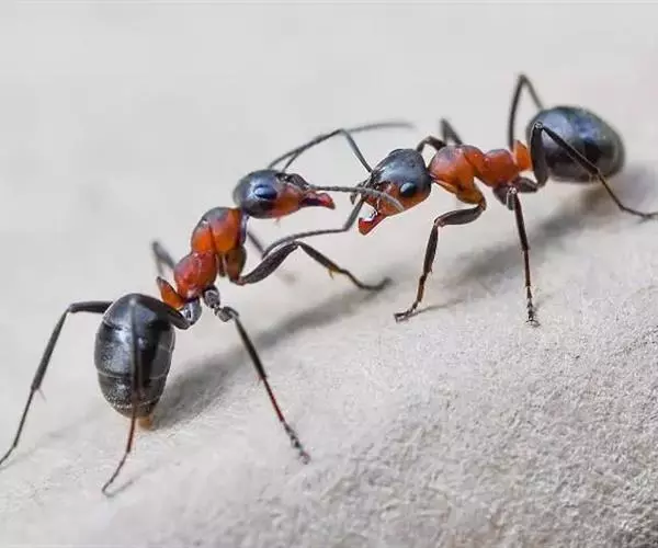 蚂蚁用两个大牙叮咬的方式进行攻击或自卫,咬时会分泌出蚁酸(甲酸),刺激被叮咬的伤口红肿疼痛。
