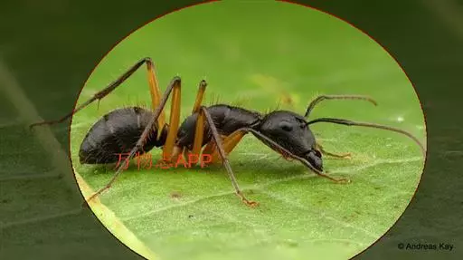 蚂蚁的身体分为头、胸、腹三部分,有六足,体壁薄且有弹性,有膜翅,硬而易碎。