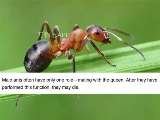 一般的蚂蚁都是雌性的,但它们不负责生育,只有蚁后生育。一个蚁巢中也培养一批雄蚁和雌蚁,它们不工作,只是进食生长,都有翅膀,到成熟后一起飞出蚁巢交配,交配后雄蚁很快死亡,雌蚁寻找一个合适的地点筑巢,脱去自己的翅膀,成为蚁后,产卵发展一个新的蚁巢。