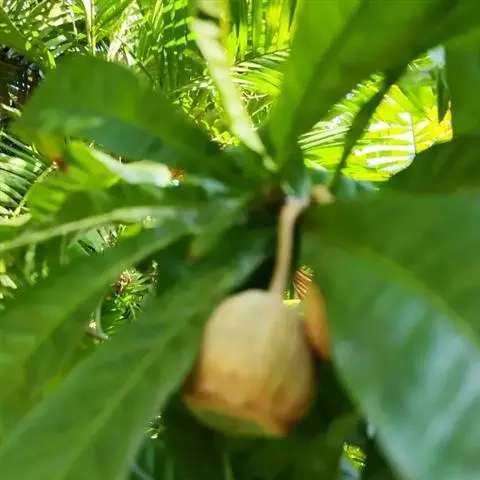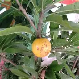 果实球形,未熟时绿色,成熟果黄绿色至橙黄色,光滑,皮薄,果肉橙黄色,富含淀粉,质地似蛋黄且有香气,含水量少,味略甜。其味道口感介乎于番薯和榴莲之间。种子通常1-2粒,近圆形或椭圆形。果实12月成熟,采收后需要后熟4-7天方可食用。