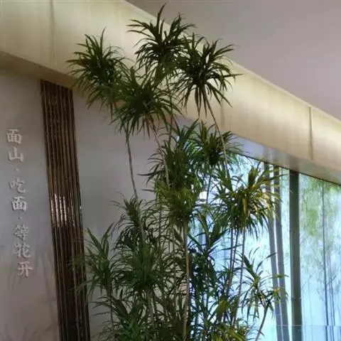 海南龙血树(花) 用龙血树制作盆景,独具海南热带风姿,树势苍劲古朴,格调文雅清新,枝繁叶茂,树影婆娑,美观大方,粗根悬露,情趣盎然,树皮嶙峋,绿叶葱郁,姿态优美,给人以"老态未龙钟"之感。龙血树株形优美规整,叶形叶色多姿多彩,盆栽龙血树成活率高,繁殖、管理容易,它既喜光,又耐旱、耐荫,为现代室内装饰的优良观叶植物,中、小盆花可点缀书房、客厅和卧室,大中型植株可美化、布置厅堂。龙血树对光线的适应性较强,在阴暗的室内可连续观赏2-4周,明亮的室内可长期摆放。此外,也可作为庭院绿化树种,都具有极高的观赏价值。