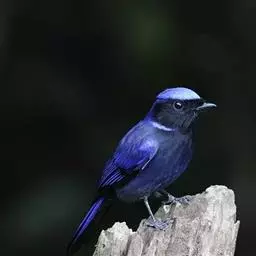 蓝大翅鸲是鹟科、大翅鸲属小型鸟类,体长19-21厘米。两翅尖长。雄鸟通体鲜紫蓝色具金属光泽。…