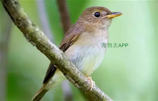 橙胸姬鹟:体长12-16厘米,是一种体型略小的林栖型鹟。尾黑而基部白,上体橄榄褐色,额具一白色横带,…