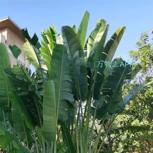 旅人蕉(学名:Ravenala madagascariensis Sonn.)旅人蕉科植物,树干像棕榈,高5-6米。叶2行排列于茎顶,像一把大折扇,叶片长圆形,似蕉叶。花序腋生,佛焰苞内有花5-12朵,排成蝎尾状聚伞花序;萼片披针形,革质;花瓣与萼片相似,惟中央1枚稍较狭小;雄蕊线形,花药长为花丝的2倍;子房扁压,花柱约与花被等长。蒴果开裂为3瓣;种子肾形;被碧蓝色、撕裂状假种皮。