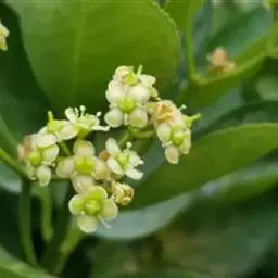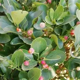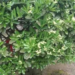 常绿灌木或小乔木,高达8米。 叶光亮革质,倒卵形或窄长椭圆形,长3-6厘米,宽2-3厘米。 聚伞花…