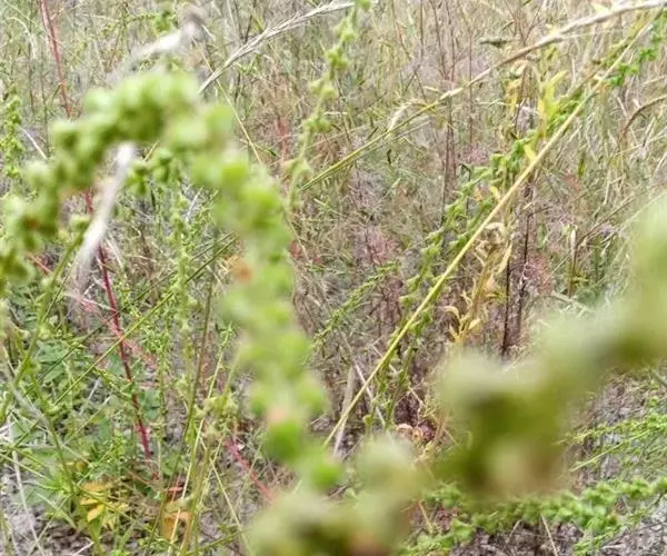 豚草(学名:Ambrosia artemisiifolia L.):一年生草本,高20-150厘米;茎直立,上部有圆锥状分枝,有棱,被疏生密糙毛。下部叶对生,具短叶柄,二次羽状分裂,裂片狭小,长圆形至倒披针形,全缘。上面深绿色,被细短伏毛或近无毛,背面灰绿色,被密短糙毛。雄头状花序半球形或卵形,径4-5毫米,具短梗,下垂,在枝端密集成总状花序。总苞宽半球形或碟形;花冠淡黄色,长2毫米,有短管部,上部钟状,有宽裂片。瘦果倒卵形,无毛,藏于坚硬的总苞中。花期8-9月,果期9-10月。