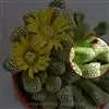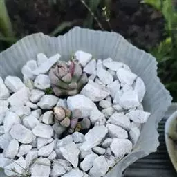 荒玉为番杏科生石花属,原产南非。株体呈白粉色,表面布满凹凸纹路,凹陷处为红褐色,每年秋季开黄花。