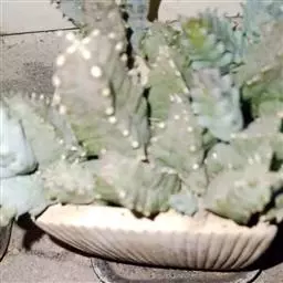雷童枝繁叶密,青翠可人,小巧玲珑的肉质叶上布满了肉质刺,酷似一只只绿色小刺猬,奇特而可爱。黄、白色的小花虽然不大,但星星点点地点缀在青枝绿叶之间,给人以素雅清奇之感。
