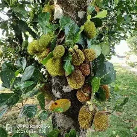 二色波罗蜜从花到果实成熟期时间较长,一般果实少而陆续成熟,种子量少。采种时注意选择健壮高大母树,种子数量会更集中,发芽率高。果实采收后在水中或装在袋里擦去果肉,洗净后即得种子。种子千粒重约200-245克。种子处理干净后,最好立即播种,播种前种子浸泡8小时左右,若需要贮藏,必须保湿贮藏,贮藏时间不宜过长,否则会影响发芽率。