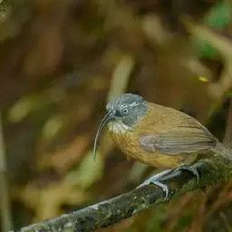 剑嘴鹛:中型鸟类,体长21-22厘米。嘴特别细长而向下弯曲,头顶和头侧烟灰色具长而窄的白色眉纹,…
