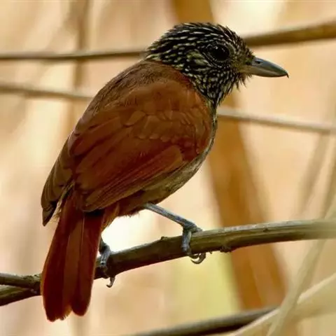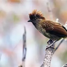 条纹噪鹛是画眉科、噪鹛属中型鸟类,体长28-32厘米。头具短的羽冠,上体栗褐色,飞羽外翻蓝灰色。…