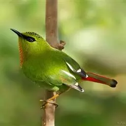 火尾绿鹛是莺科、绿鹛属小型鸟类,体长11-14厘米。上体绿色,头顶至枕具黑色鳞状斑,眼先和眼后黑色,…