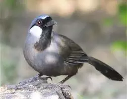 黑顶噪鹛:中型鸟类,体长24-26厘米。前额、脸、颏、喉黑色,头顶黑褐沾棕或深棕橄榄褐色,…