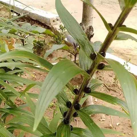 药百合是原产在日本的美丽百合L.speciosum Thunb.的一个变种,它与本种的主要区别是鳞茎为球形,叶7~9脉,花朵芳香。