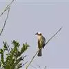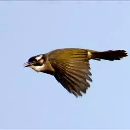 叫声有点像支离的猫叫声,一般似“shiu”的3声断续,从容不迫地发出,大概1分钟叫5、6次,冲击捕虫时或惊恐时也常发出似“krak”的单噪声,但平时甚静,不但栖止时不爱叫,来来去去也甚寂静。雄鸟啭鸣为五音一拍的kek tau tau tau tau。粗哑的kek kek声反复鸣叫。