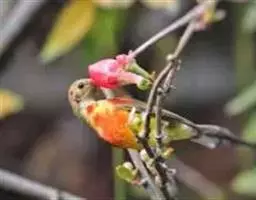 雌性成鸟头、颈和胸纯为橄榄褐色;腹部为比雄鸟略淡的红色;翼上的白色虫蠹状纹转为淡棕色。