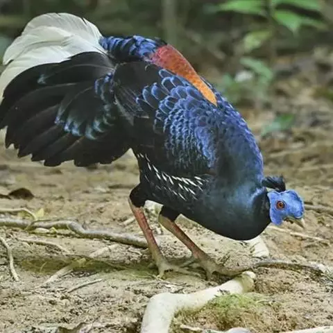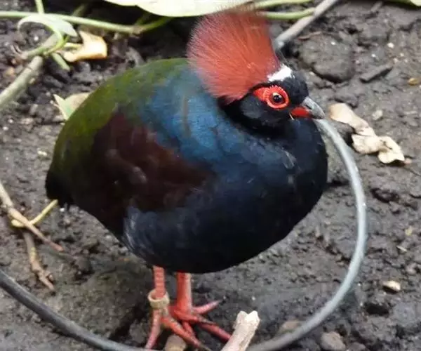 冕鹧鸪(学名:Rollulus roulroul):是鸡形目、雉科、冕鹧鸪属的一种漂亮的鸟类,体长26厘米左右,大小和鹌鹑差不多。整体呈带有光泽的蓝紫色,腿为赤红色;雌雄与其他雉类差异较大不同,雌雄都长着红眼圈,喙附近长着细长的须,均具有漂亮的羽色。雄性整体呈带有光泽的蓝紫色,背部略显浅绿色,具羽冠,头上生有一撮艳丽的鲜红色羽毛。