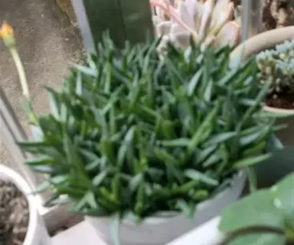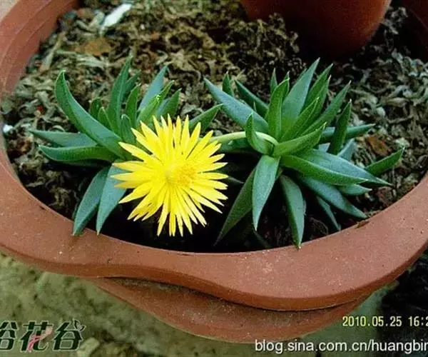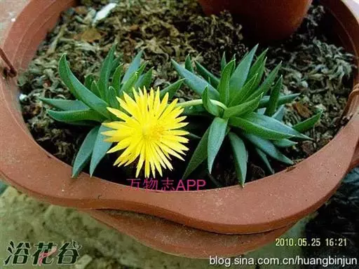 照波,番杏科多肉植物、 此种生长较快,栽培容易,细长的浓绿色叶3厘米左右,开黄色花。 浇水也是以干湿交替进行,但要防止长期干旱与湿涝。夏季高温需遮阴,忌暴晒。