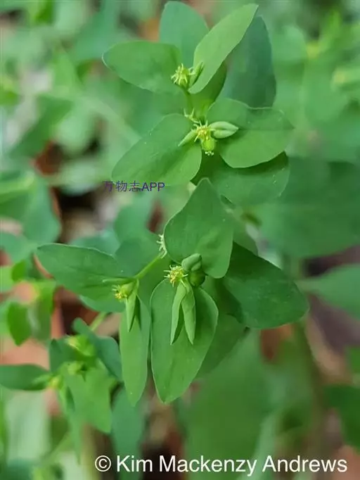 花序单生二歧分枝顶端,基部近无柄;总苞杯状,高与直径均约1毫米,边缘4裂,裂片钝圆,边缘具睫毛;腺体4,新月形,先端具两角,黄绿色。雄花数枚,常不伸出总苞外;雌花1枚,子房柄长2-3.5毫米,明显伸出总苞外;子房具3个纵棱,光滑无毛;花柱3,分离;柱头2裂。蒴果三棱状球形,长与直径均2-2.5毫米,无毛。种子卵棱状,长1.2-1.3毫米,直径0.7-0.8毫米,具纵棱,每个棱面上有规则排列的2-3个小孔,灰色或灰白色;种阜黄白色,盾状,无柄。花果期2-10月。
