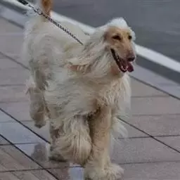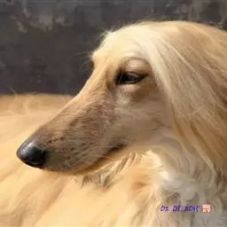 阿富汗猎犬全身披丝绢状的长毛,毛色鲜艳,呈多种颜色,背中线附近毛短,…