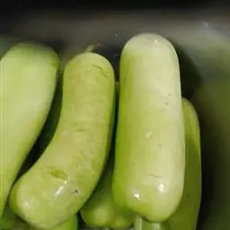 小果型冬瓜:早熟或较早熟。第一雌花发生节位一般在第10节左右,个别品种(如北京一串铃)在第3-5节发生雌花。果实较小,扁圆、近圆或长圆形。果实被蜡粉或无蜡粉。每株数果,嫩果供食,果重2-5公斤,主要品种有北京一串铃,四川成都的五叶子,南京提早冬瓜,台湾的圆冬瓜。