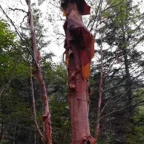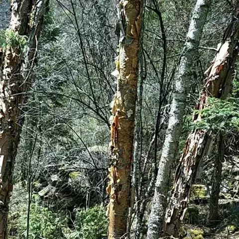 岳桦是乔木的一种。高8-15 (20)米;树皮灰白色,成层、大片剥裂。枝条红褐色,无毛;幼枝暗绿色,密被长柔毛,稍有树脂腺体;芽鳞密被白色绒毛。