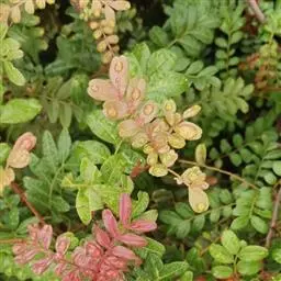 盐肤木 落叶小乔木或灌木,高2-10米;小枝棕褐色,被锈色柔毛,具圆形小皮孔。