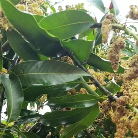 圆锥花序宽大,多分枝,雄花序长30-40厘米,雌花序较短,密被锈色柔毛;苞片披针形,长约1毫米,被微柔毛,小苞片极小,花乳白色,花梗长约1毫米,被微柔毛;雄花:花萼外面被微柔毛,裂片长卵形,长约1毫米,边缘具细睫毛;花瓣倒卵状长圆形,长约2毫米,开花时外卷;雄蕊伸出,花丝线形,长约2毫米,无毛,花药卵形,长约0.7毫米;子房不育;雌花:花萼裂片较短,长约0.6毫米,外面被微柔毛,边缘具细睫毛;花瓣椭圆状卵形,长约1.6毫米,边缘具细睫毛,里面下部被柔毛;雄蕊极短;花盘无毛;子房卵形,长约1毫米,密被白色微柔毛,花柱3, 柱头头状。