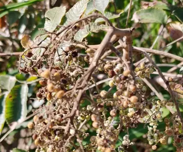 【佤药】盐肤木:根、叶治疗湿热黄疸,膀胱炎,咽喉炎,肠炎,痢疾,咯血,疮疡痈毒,胃腹痛,感冒,痘疹不透《中佤药》。