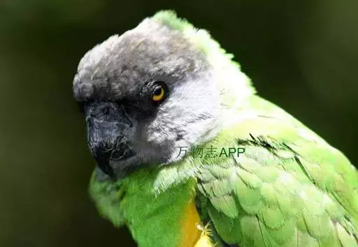 塞内加尔鹦鹉身体主要呈绿色,头部为灰色,腹部为黄色 。