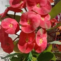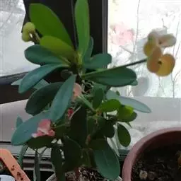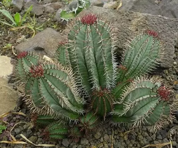 虎刺梅:别称铁海棠,是蔓生灌木植物。茎多分枝,长60-100厘米,直径5-10毫米,具纵棱,密生硬…