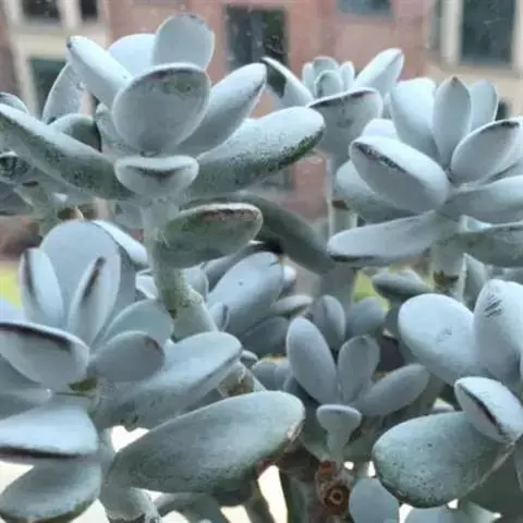 熊童子为景天科银波锦属多肉植物,株形不大,分枝繁多,玲珑秀气,体形文雅,独特漂亮,可作室内小型盆栽。绿色叶片密布白色绒毛,很像熊掌,可用小型工艺盆栽种点缀书桌、窗台等处,也可用为品种收集栽培。