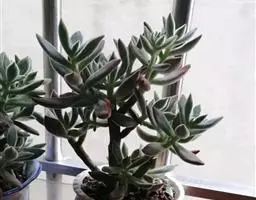 株高25厘米,分枝较少,茎被棕褐色硬表皮,易剥落。叶长圆形或倒披针形,略扁平至几乎圆柱状,长5- 8厘米,宽1.5-2.5厘米,叶全缘,先端较尖锐。