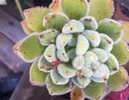 熊童子常见病害有萎蔫病和叶斑病 熊童子的新叶 ,萎蔫病可使叶片发黄枯萎,严重可导致死亡。叶斑病会使熊童子的叶表出现各种不规则的斑痕,影响观赏价值。可采用50克菌丹进行800倍稀释后喷洒防治。