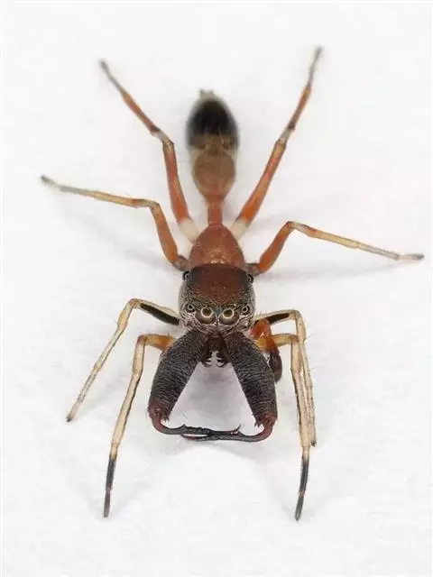 蚁蛛为蛛形纲、蜘蛛目、跳蛛科、蚁蛛属物种。其外形似蚂蚁。头部与胸部之间有紧缢,腹柄清晰可见。…