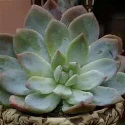 株高在15厘米以内,在植株成长过程中下部的叶片逐渐凋落,在茎的顶端排成像莲花的外观,肉质叶,叶片的外缘一圈紫红色边,叶面偶有散生一些紫红色斑点;可采用摘叶叶插和分株繁殖。