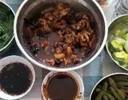 (4)将烤网洗净放在碳火上,放入由竹筷固定好的玉米,先烤三分熟后,再涂上调味料B,继续烤,并须翻动玉米,以能让玉米能入味,烤至熟透并微焦香,即可食用。 玉米可以撒上芝麻或起司烤,味道也很好。