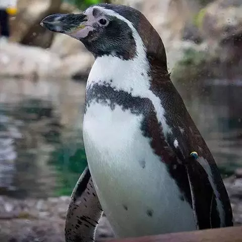 洪堡企鹅是一种分布于南美洲的企鹅,名称源自第一个介绍该物种给西方学界的德国自然科学家亚历山大·冯·洪堡。前肢为鳍脚,适于划水。具鳞片状羽毛,羽轴宽而短,羽片狭窄而密集,均匀分布于体表。骨骼沉重而不充气,胸骨具有发达的龙骨突起,内含有多脂肪的骨髓。尾羽短。跗跖短,并移至躯体后方。跗间具蹼。上嘴的角质部由3个角质片组成。舌表面布满钉状乳头,适于取食甲壳类、乌贼和鱼类等。属易危物种,自然界数量在3,300-12,000 只之间。主要在秘鲁和智利沿岸繁殖。