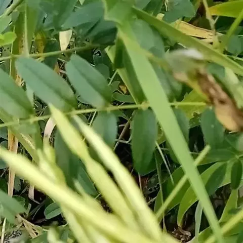 叶轴上面具狭槽;托叶早落;小叶8-12对,对生或近对生,纸质,长圆形或长椭圆形,长2.5-3.5厘米,宽1-1.5厘米,两端钝圆,先端常具芒尖,上面被灰白色疏短柔毛,下面密被金黄色或锈色贴伏状绒毛,沿中脉和小叶柄更密,中脉上面凹陷,下面明显隆起,侧脉4-5对,上面常不明显,细脉下面可见。总状花序顶生;花多数,密集,长6-8厘米;苞片钻状,与花萼等长;花萼钟状,长约7毫米,萼齿5,三角形,不等大,上方2齿近连合,被锈色疏柔毛;