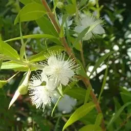 香桃木是桃金娘科香桃木属植物。枝四棱,幼嫩部分稍被腺毛;叶芳香,革质,叶片卵形至披针形;花芳香,…