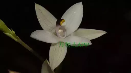 足茎毛兰(学名:Eria coronaria (Lindl.) Rchb. f.):植物体无毛,干后全体变黑,具根状茎;根状茎上常有漏斗状革质鞘,假鳞茎密集或每隔1-2厘米着生,不膨大,圆柱形。叶2枚着生于假鳞茎顶端,1大1小,长椭圆形或倒卵状椭圆。花序1个,自两叶片之间发出,具2-6朵花;花白色,唇瓣上有紫色斑纹;花瓣长圆状披针形,与中萼片近等长,宽约4.5毫米,先端钝;唇瓣轮廓长圆形,长14-15毫米,宽11-12毫米,3裂。蒴果倒卵状圆柱形,长约2厘米;果柄长约3毫米。花期5-6月。