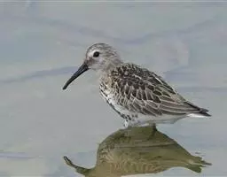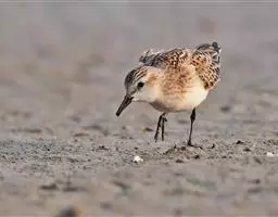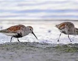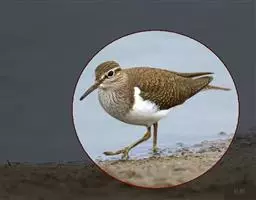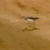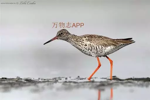 红脚鹬:体长28厘米,上体褐灰,下体白色,胸具褐色纵纹。飞行时腰部白色明显,次级飞羽具明显白色外缘。…