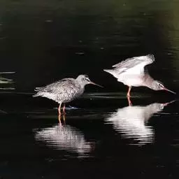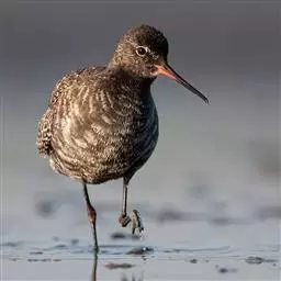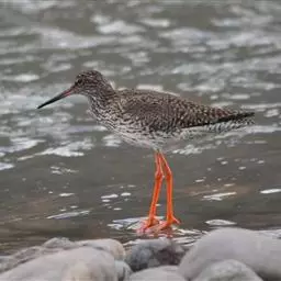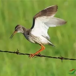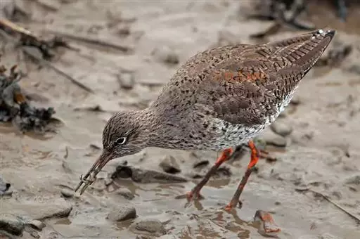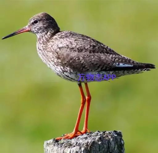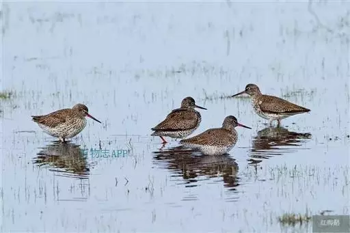 红脚鹬(学名:Tringa totanus):体长28厘米,上体褐灰,下体白色,胸具褐色纵纹。飞行时腰部白色明显,次级飞羽具明显白色外缘。尾上具黑白色细斑。虹膜黑褐色,嘴长直而尖,基部橙红色,尖端黑褐色。脚较细长,亮橙红色,繁殖期变为暗红色。幼鸟橙黄色。