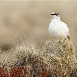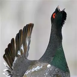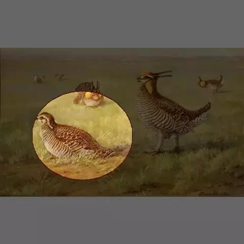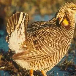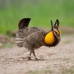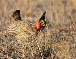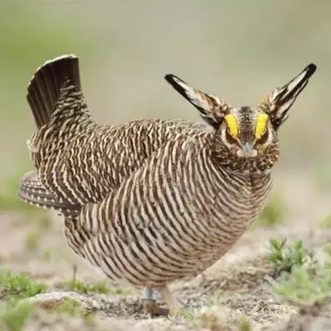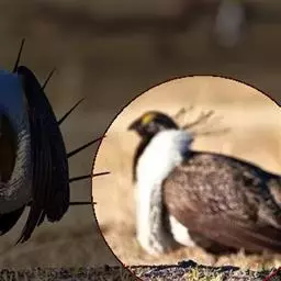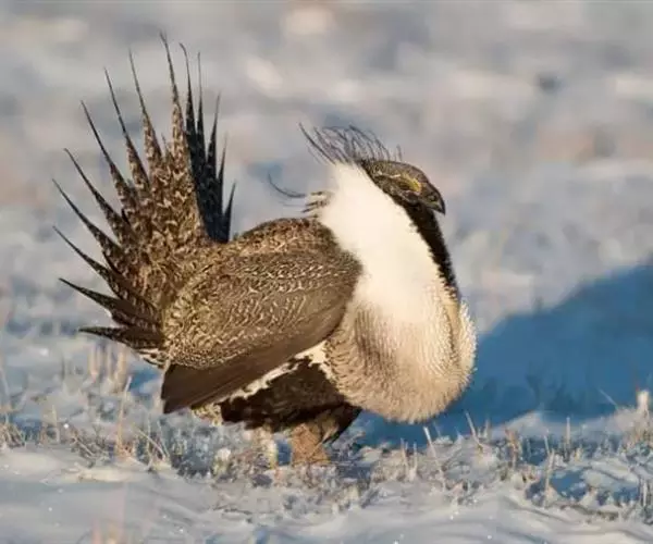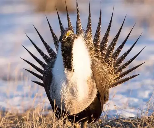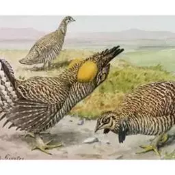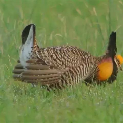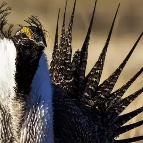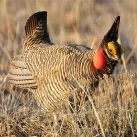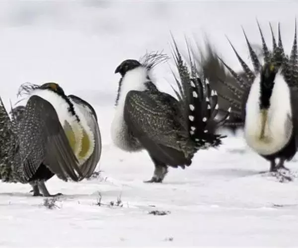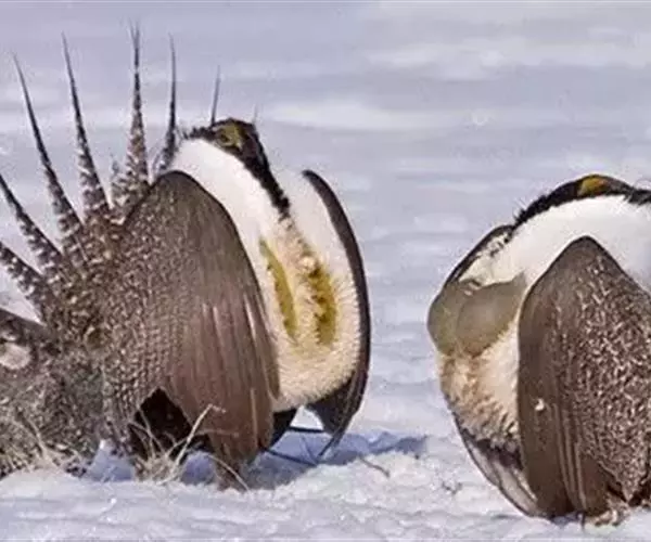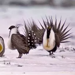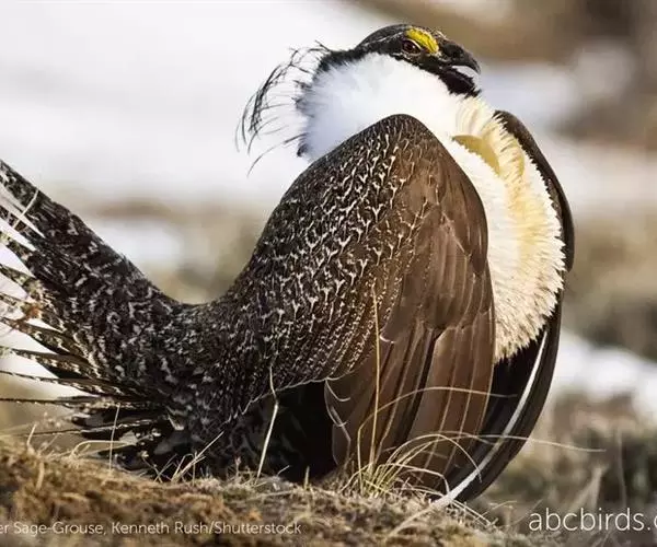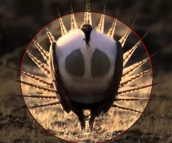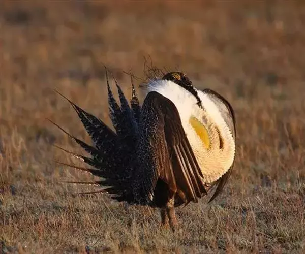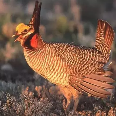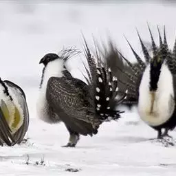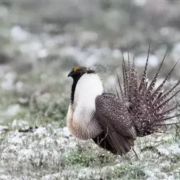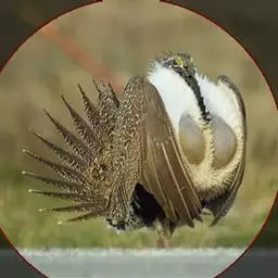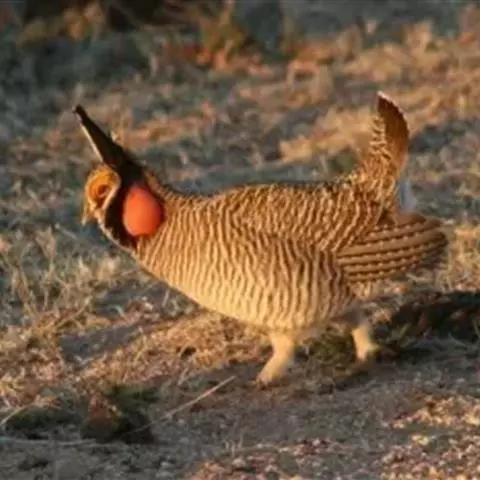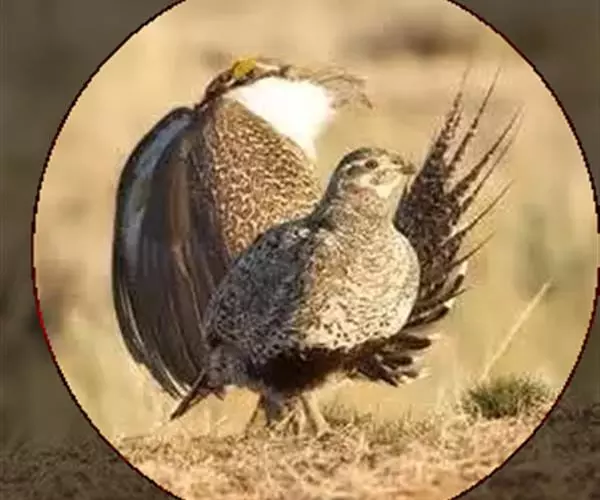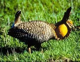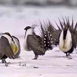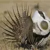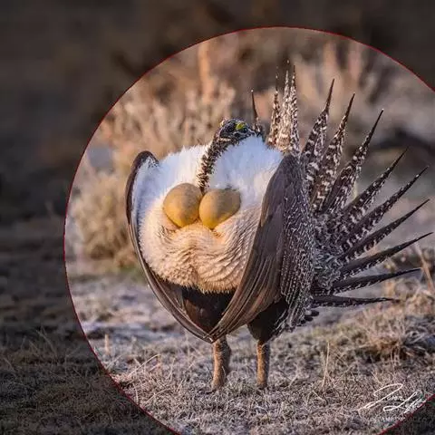 艾草松鸡(学名:Centrocercus urophasianus):是北美洲最大的松鸡。身高48-76厘米,体重2300-3200克。雄性大于雌性,更重。雄性长着两个大胸,雌性却没有胸。 颈上有两个黄色的囊,可以在求偶时充气以吸引异性。走禽,体结实,喙短,呈圆锥形,适于啄食植物种子;翼短圆,不善飞;脚强健,具锐爪,善于行走和掘地寻食。雄鸟具大的肉冠和美丽鲜艳的羽毛,早成鸟,鼻孔和脚均有被羽,以适应严寒。