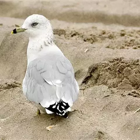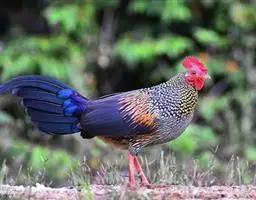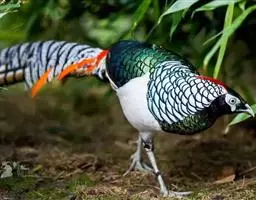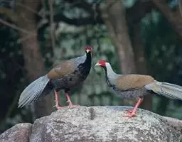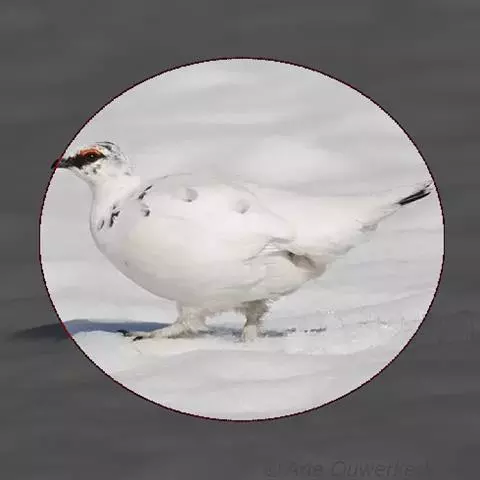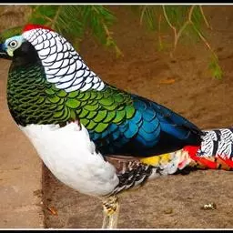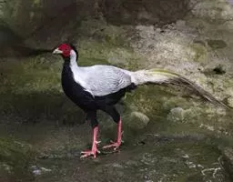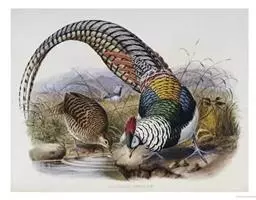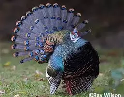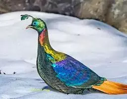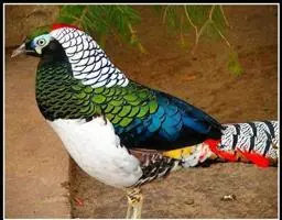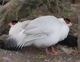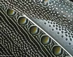 雌鸟羽色类似雄鸟毛,表面白色的斑点比雄鸟小,并有棕色和灰色的斑点。没有气囊,咽喉部位主要是灰色和白色。尾巴和雄性不一样。