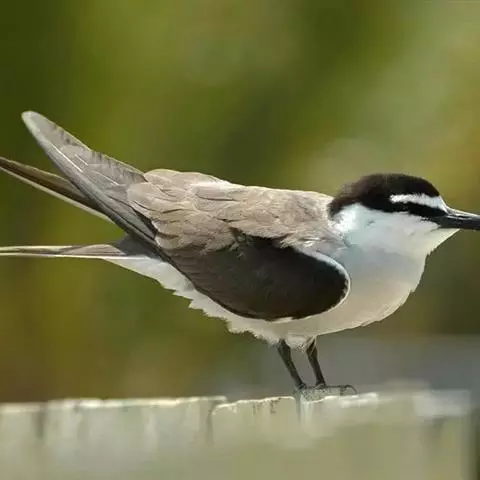 褐翅燕鸥:中型水鸟,体长360-370毫米。与乌燕鸥相似,体型稍小。额白,连接白色眉纹,…