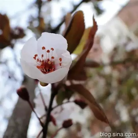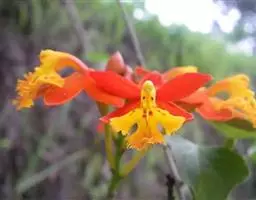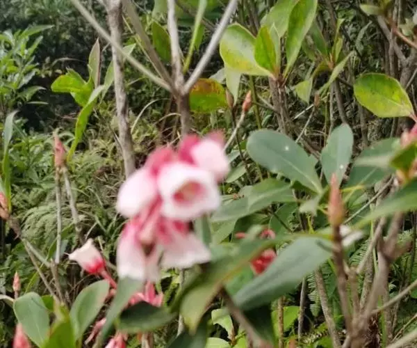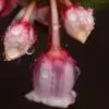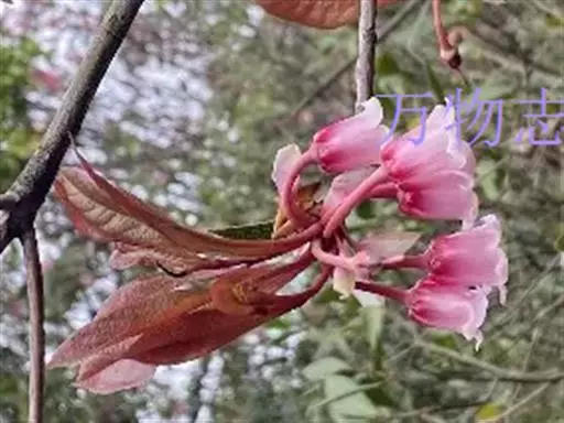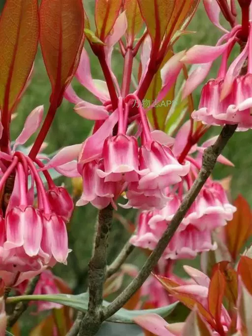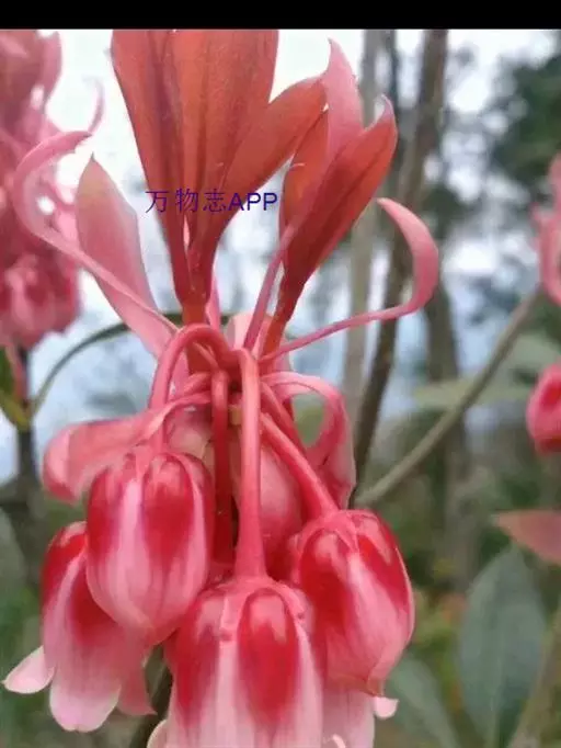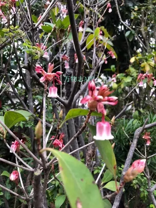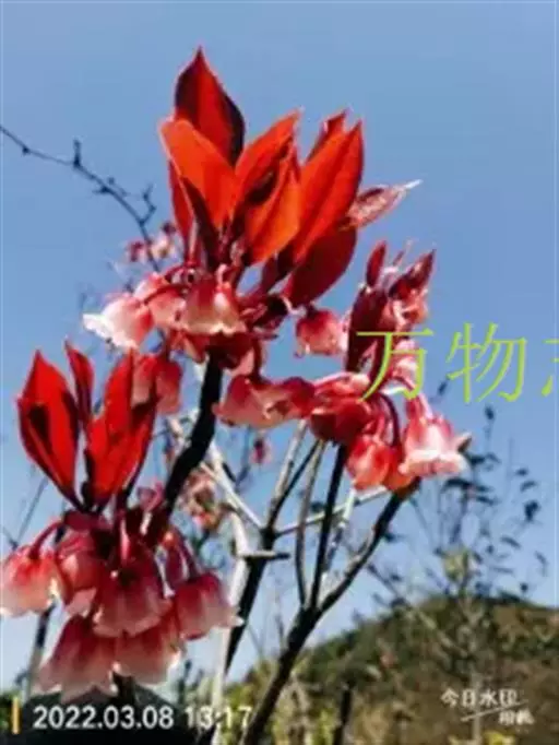 花两性,单一,稀成对生于茎枝顶叶腋,下垂;花梗纤细,淡绿色或带红色,长3-7厘米;花管红色,筒状,上部较大,长1-2厘米,径3-5毫米,连同花梗疏被短柔毛与腺毛;萼片4,红色,长圆状或三角状披针形,长2-3厘米,宽4-8毫米,先端渐狭,开放时反折;花瓣色多变,紫红色,红色、粉红、白色,排成覆瓦状,宽倒卵形,长1-2.2厘米,先端微凹;雄蕊8,外轮的较长,花丝红色,伸出花管外的长1.8-3厘米,花药紫红色,长圆形,长2-3毫米,径约1毫米,花粉粉红色;子房倒卵状长圆形,长5-6毫米,径3-4毫米,疏被柔毛与腺毛,4室,每室有多数胚珠;花柱红色,长4-5厘米,基部围以绿色的浅杯状花盘;柱头棍棒状,褐色,长约3毫米,径约1.5毫米,顶端4浅裂。果紫红色,倒卵状长圆形,长约1厘米。花期4-12月。